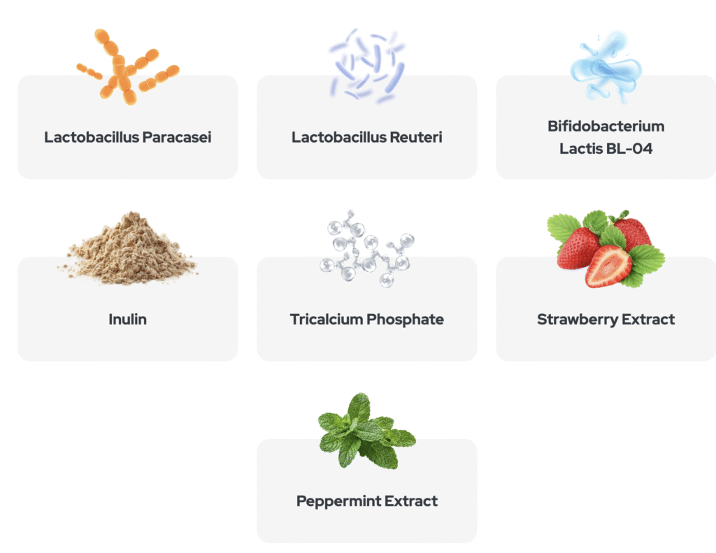 Its formula — featuring Inyamlin Prebiotics, Mentha Piperata Extract, Lactobacillus Reuteri, and Korean Strawberry Antioxidants — reflects real science, not marketing hype.